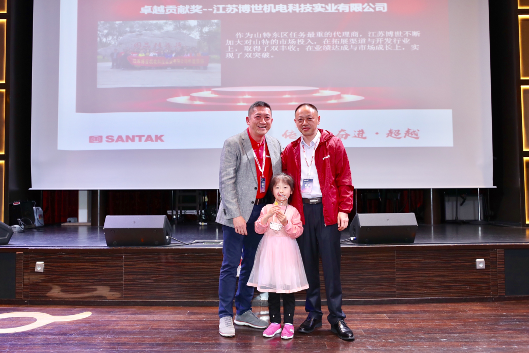 會議期間,山特對過去一年取得卓越業績及做出突出貢獻的代理商伙伴舉辦了熱烈的“杰出代理商”頒獎典禮,與合作伙伴相互勉勵、共同分享。獲獎代理商攜其子女共同上臺領獎成為本屆頒獎典禮的一大特色,伊頓電氣集團電能質量渠道業務部亞太區總經理劉耀宗(Andy Low)親自頒獎,孩子們從中也感受到山特大家庭團結、進取、拼搏的精*。