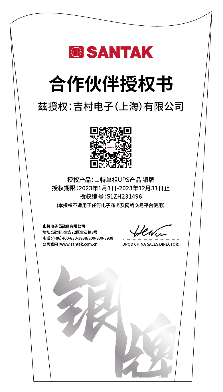 山特UPS電源2023年授權證書