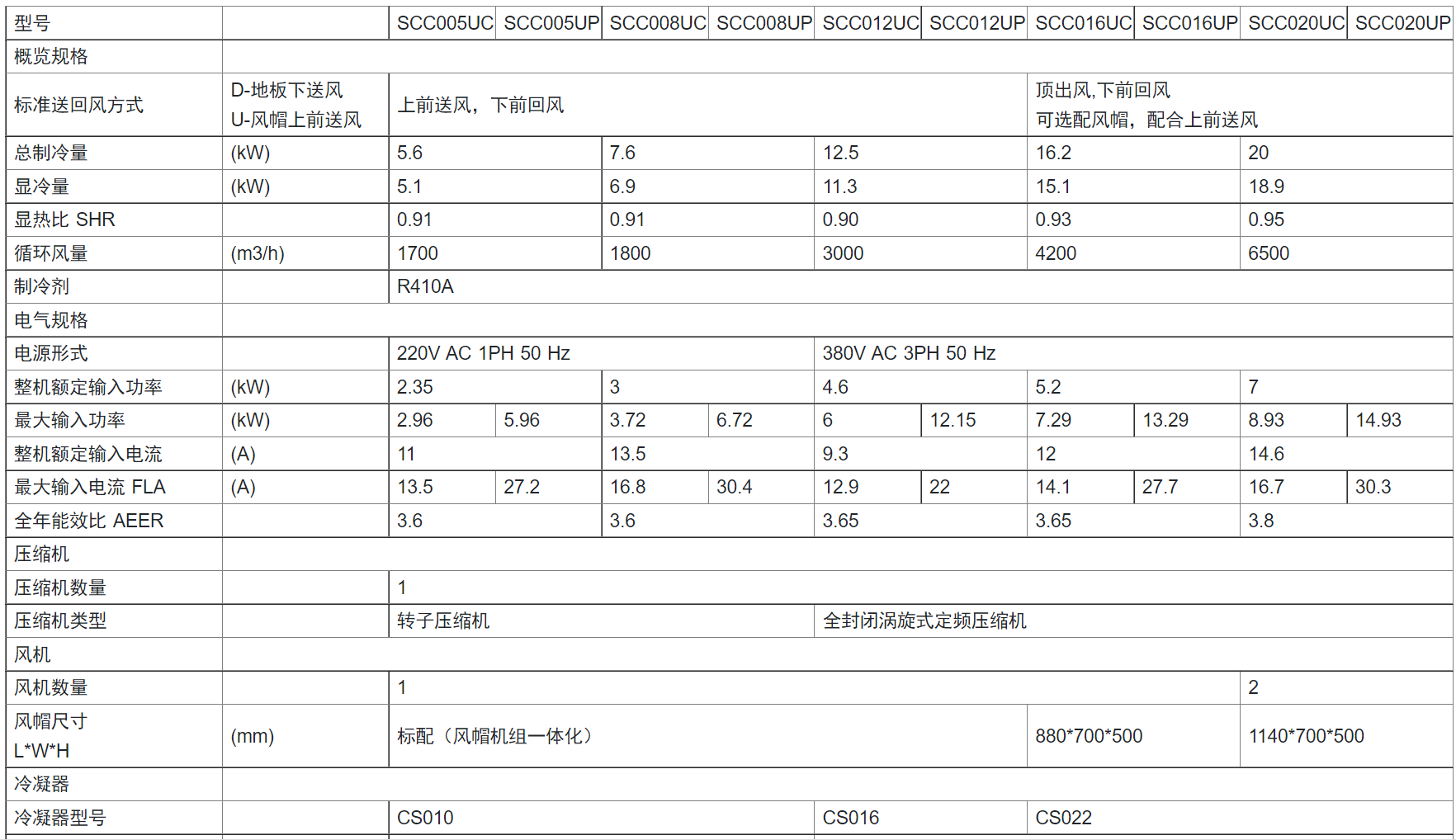 制冷量范圍涵蓋 5.6kW / 7.5kW / 12.5kW / 16.2kW / 20kW 五個量段。
